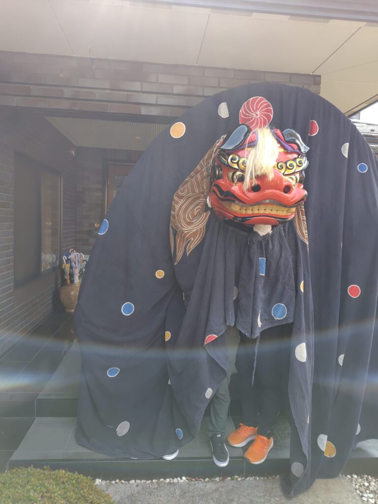 麻績神社若連中の皆さんによる獅子舞は躍動感、キレがあり、大変素晴らしい舞でした。子供たちは、やはり怖くて泣いておりましたが、このご利益で元気に過ごしてほしいものです。