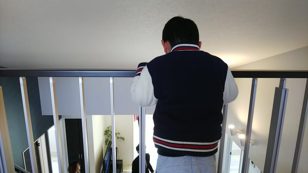 ロフトからリビングを見下ろすお子様