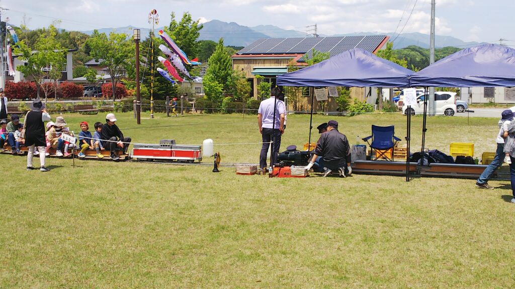 飯田駅から川路駅までの往復で乗りましたが、川路駅の前の公園では、こどもの日のイベントで
