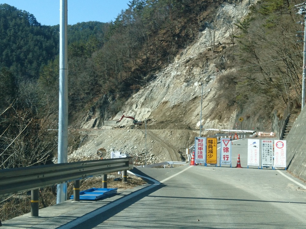 途中、昨年7月の豪雨により崩落のあった場所を迂回路で通ります、現在も復旧工事が続いています。