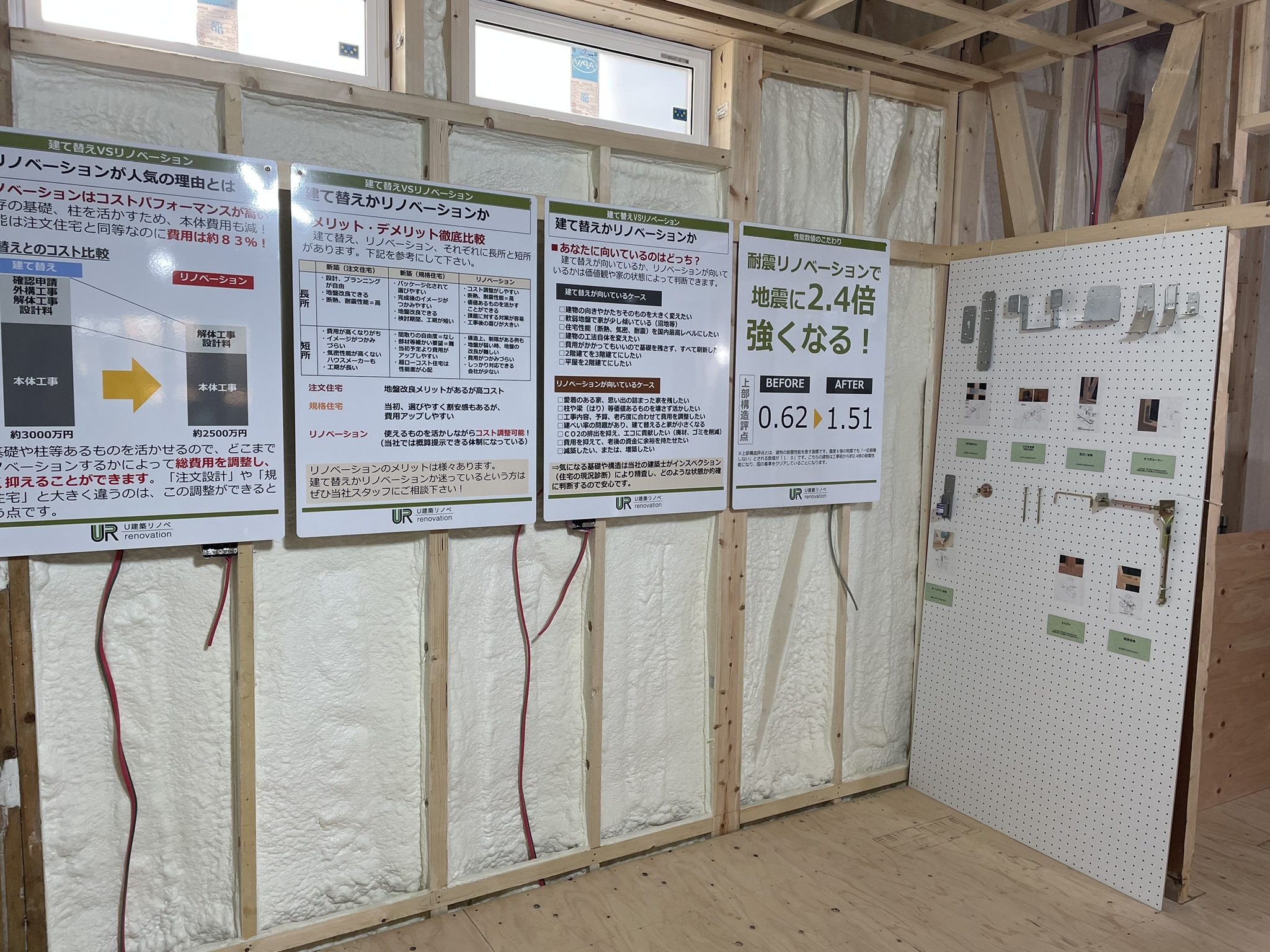 展示場では、耐震・断熱・性能などを学べる展示スペースや