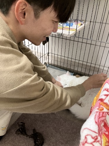 ご飯を替え、なでなでする小谷です。