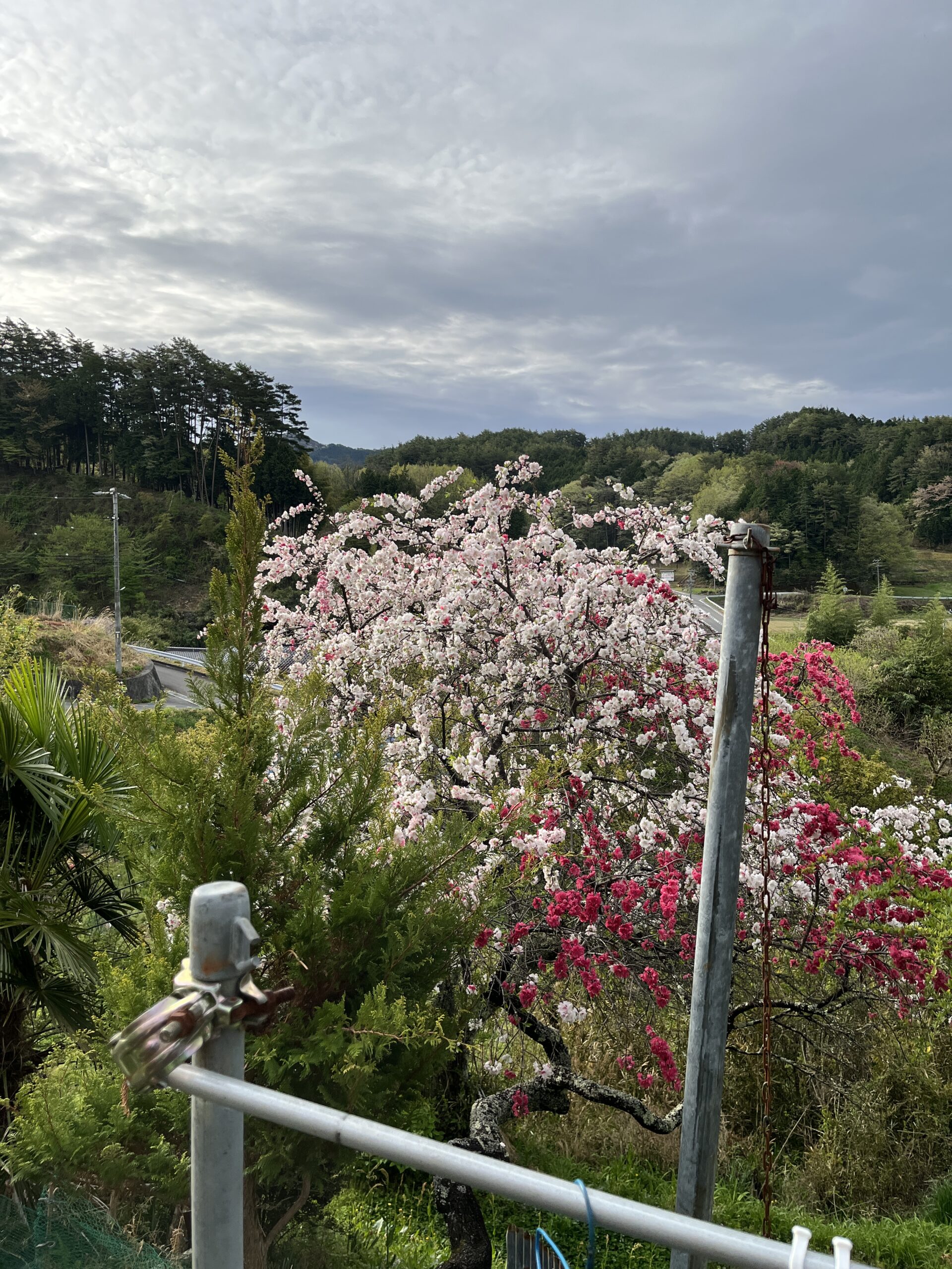 この写真は私の家の庭なのですがいろいろな木や植物が咲いていてとても楽しめます。