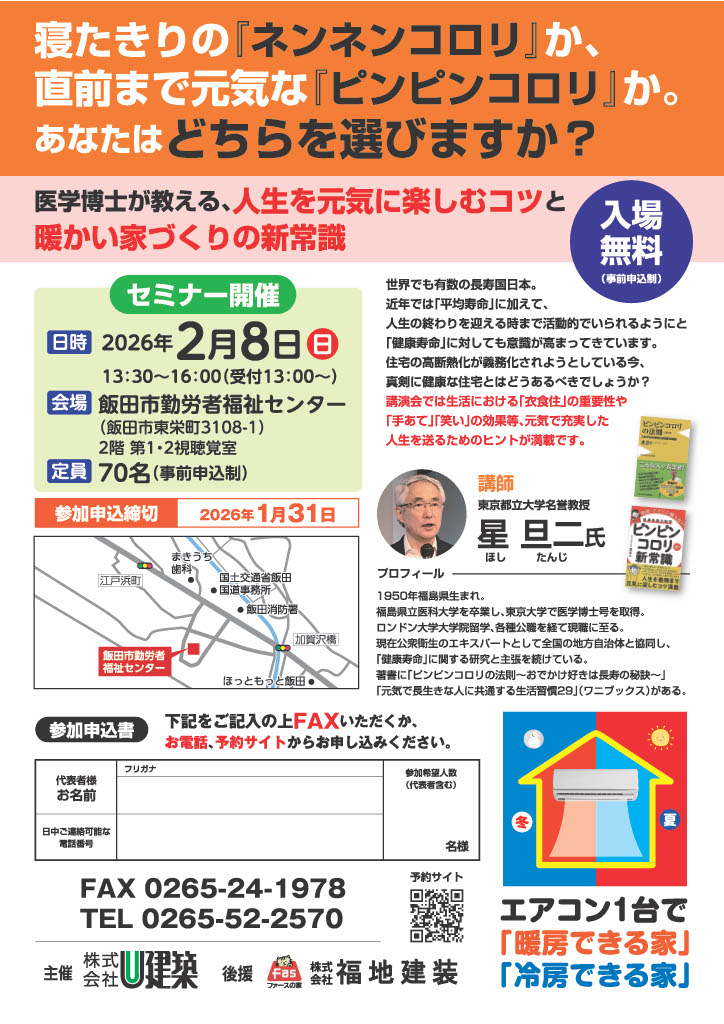 「人生を楽しむコツと暖かい家づくりの新常識」について特別講演を開催します。