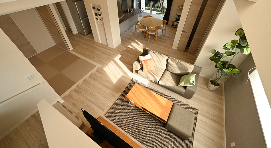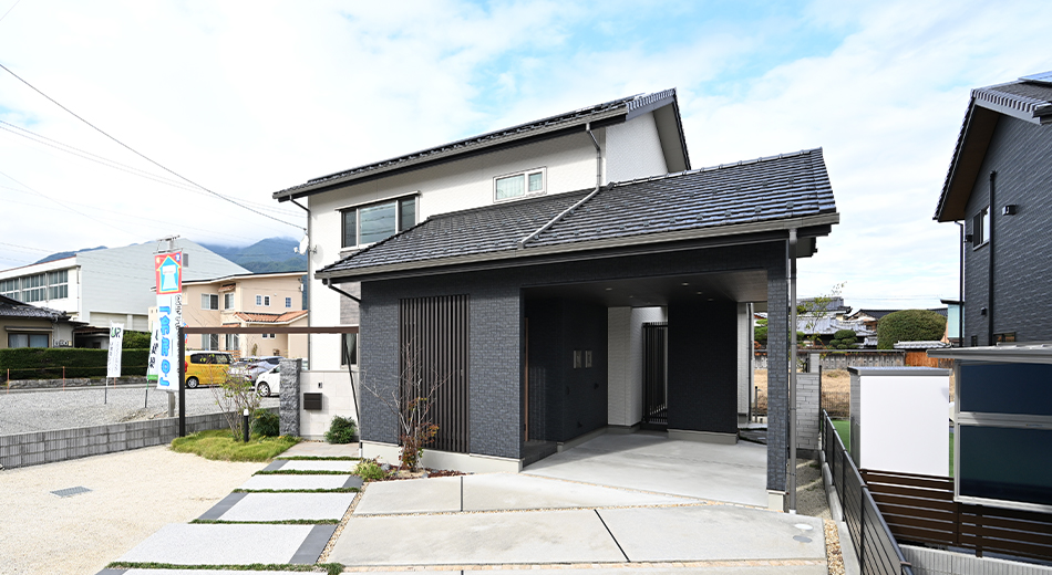 インナーガレージや手洗い水栓、リビングからの和室といった間取りの動線、大きな吹き抜けに、グレージュデザインなど、思い描いている理想の暮らしを、より身近に体感いただけます。