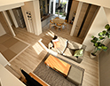 家の快適さを体感できる玄関からどのようにして、エアコン1台で暖かく・涼しい空間を生み出しているのか、仕組みを見ていただけます。