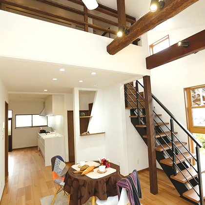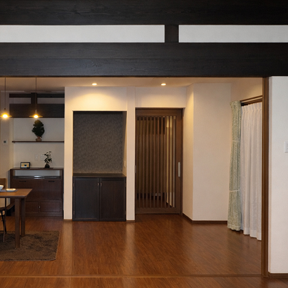 例:伝統的な梁を活かした開放的なリビングへ。