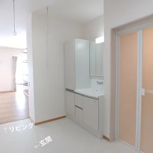 帰宅後の手洗いや雨に濡れた時などに、さっとランドリースペースに直行出来て便利です。