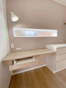 スタディデスクをキッチンの一角に設置。