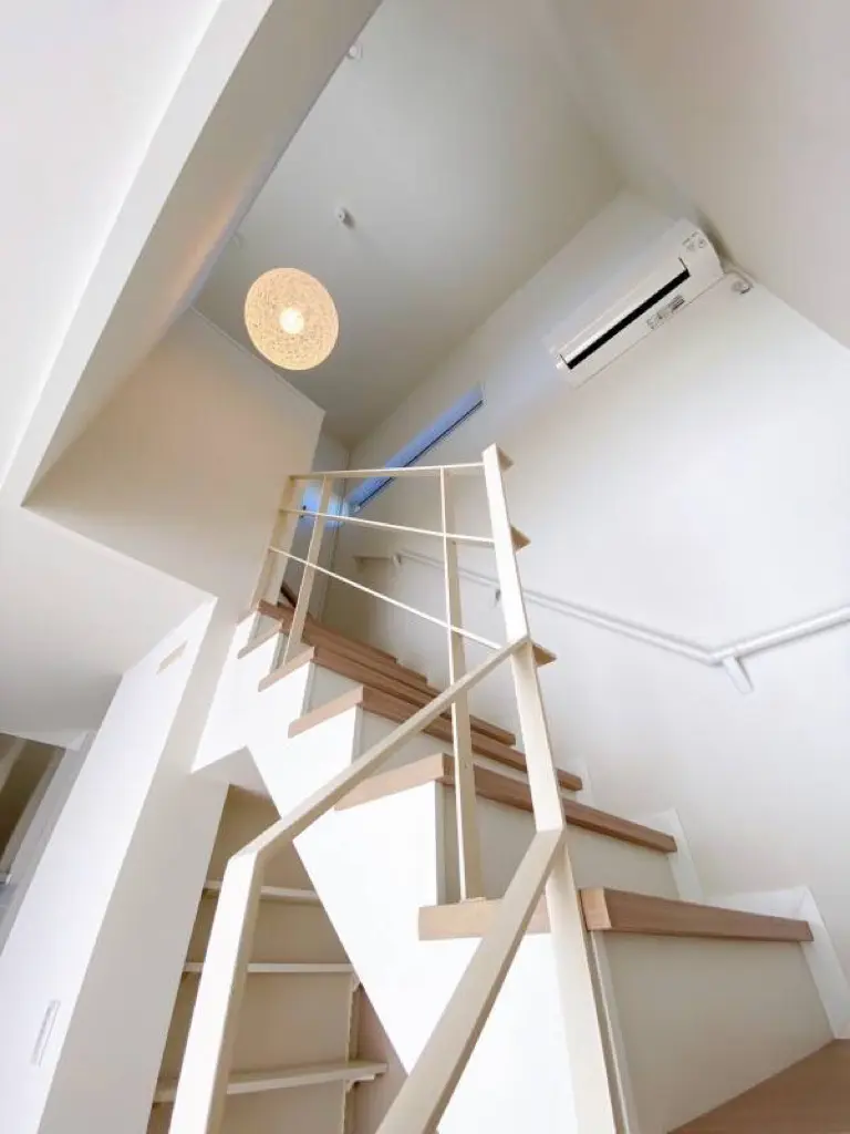 ベージュのアイアン手摺は2階への、のびやかな抜け感を演出。