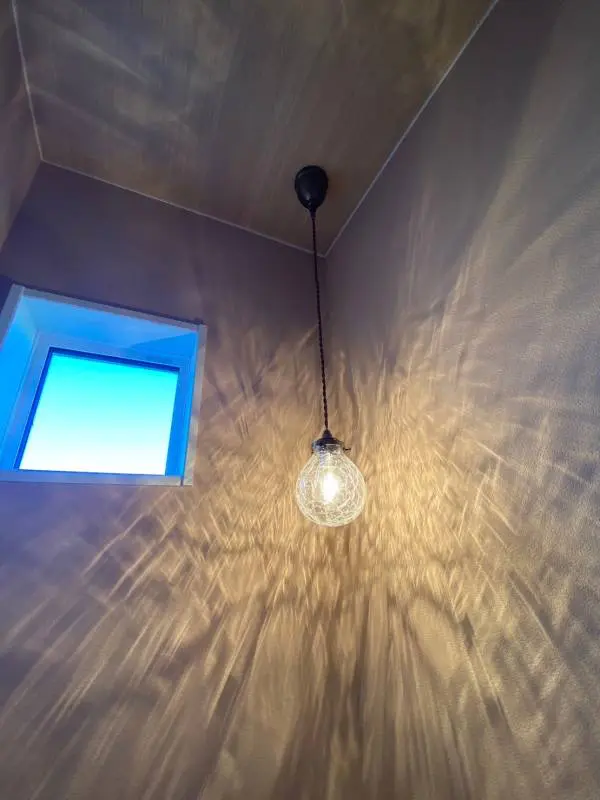 しずくのようなフォルムの照明は点灯させると陰影が美しくきらめきます。
