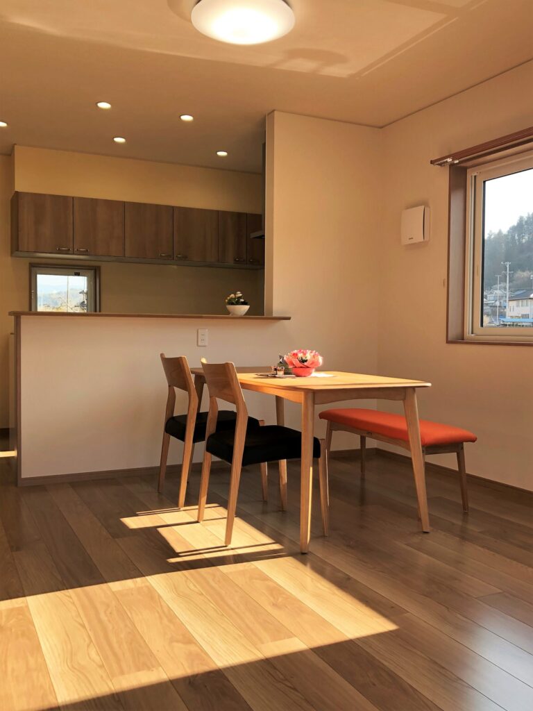 階段下が家事コーナーの回遊型プランの家