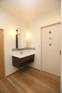 廊下には帰ってからすぐ手洗いができるよう フロートタイプの洗面台がついています。