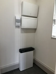 こちらはシューズクロークに設置された蓄電池です。防犯面を配慮し室内にあり、安心です。