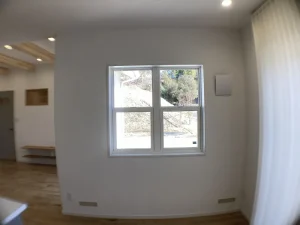 こちらの窓は上げ下げ窓を2つ横に並べて1つの窓のようにしました
