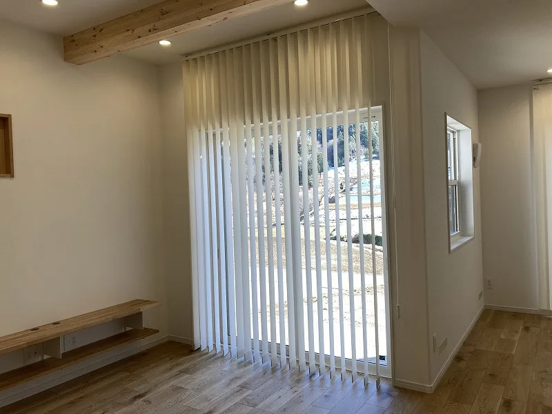 リビングの窓はカーテンを使わずに縦型ブラインドを採用しました